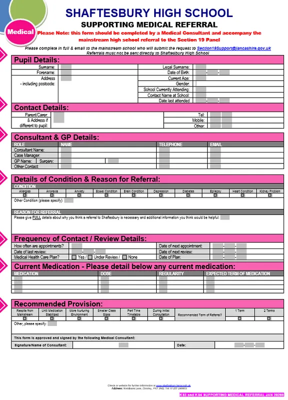 - Please click the image to download this form to send it to the consultant to complete it in full if you are requesting a Medical Place. Alternatively you could forward a link to this page so that they may download it themselves.